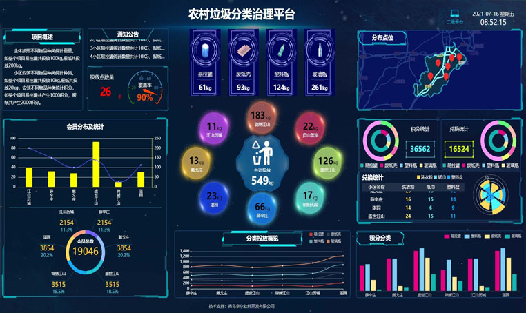 农村人居环境整治智慧平台,主要包括基础数据管理、管理一张图、随机抽签、考评细则、现场考评、问题跟踪、公众参与、大数据分析等功能。智慧化平台通过制定定量化全覆盖的的考核标准,规范的随机分配流程和标准化的问题处理机制,加强对农村人居环境的巡查,督促发现问题的整改和处理,利用“互联网+农村人居环境整治”,有力有序科学推进农村人居环境整治工作。